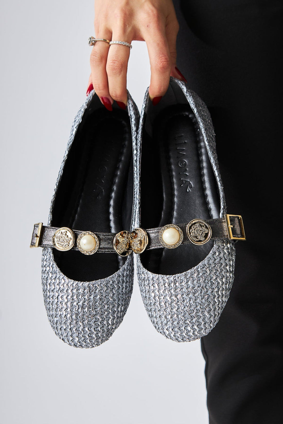 Sufia Platinum Buckled Braided Women's Ballet Flat