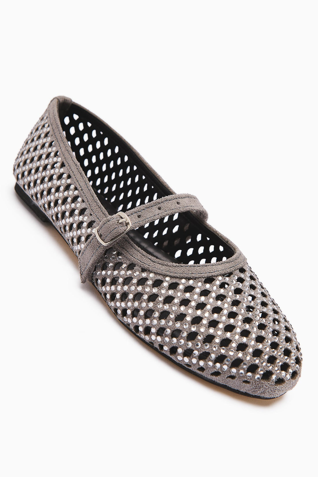 Nicki Grey Suede Oval Toe Perforated Stone Detail Single Strap Women's Casual Shoe