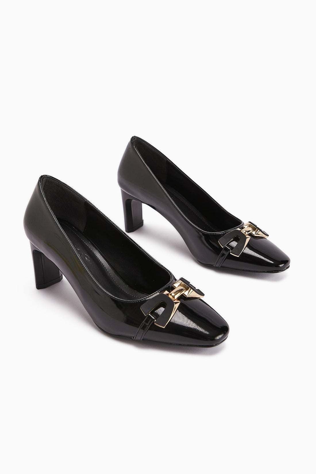 Lula Black Patent Leather Metal Buckled Pointed Toe Women's Heels
