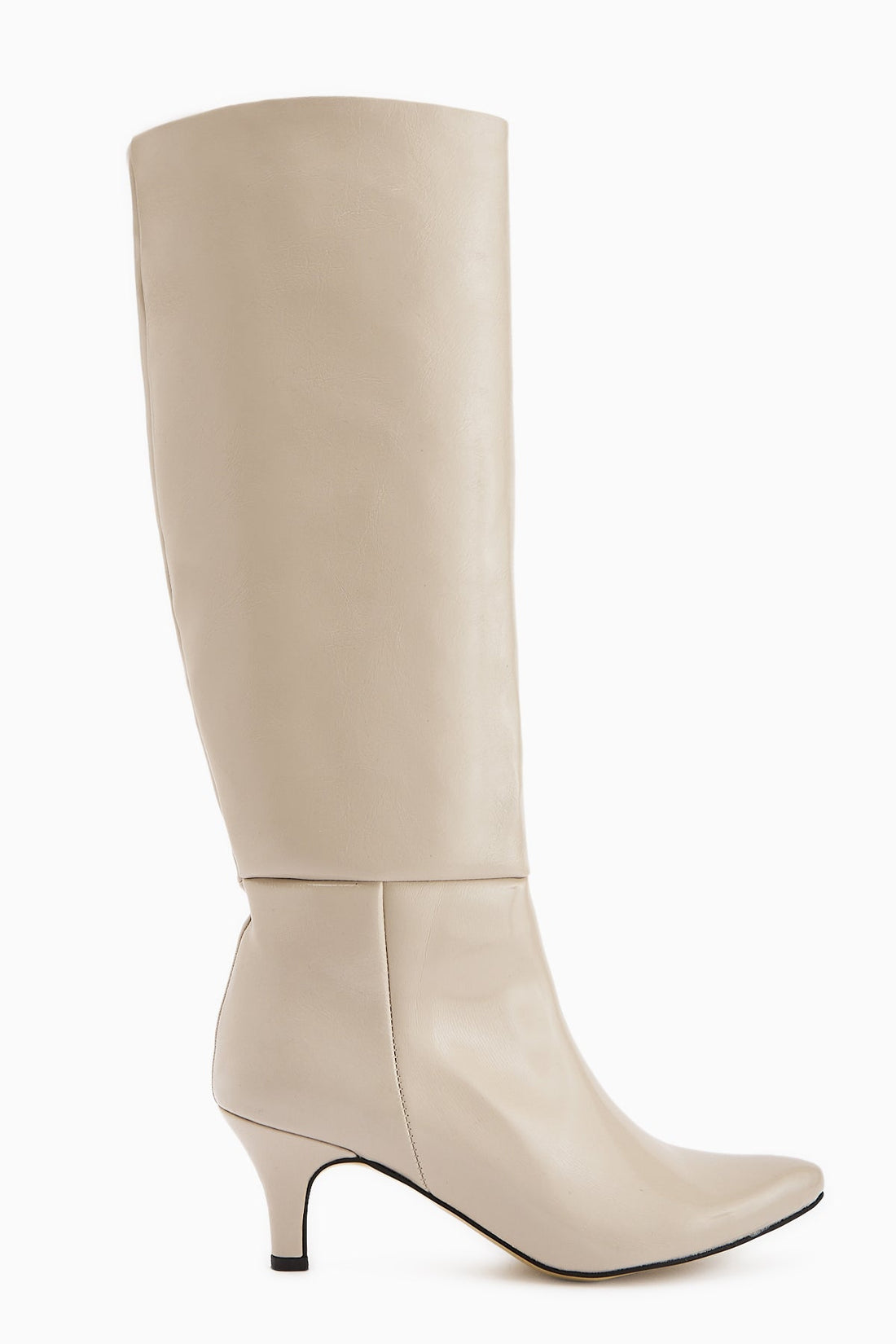 Ariya Beige Platform Heeled Women's Boot with Zipper