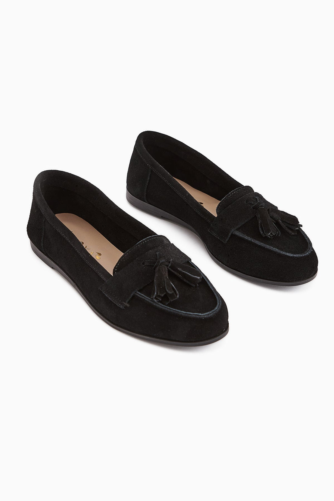 Doris Genuine Leather Black Suede Tassel Women's Loafer