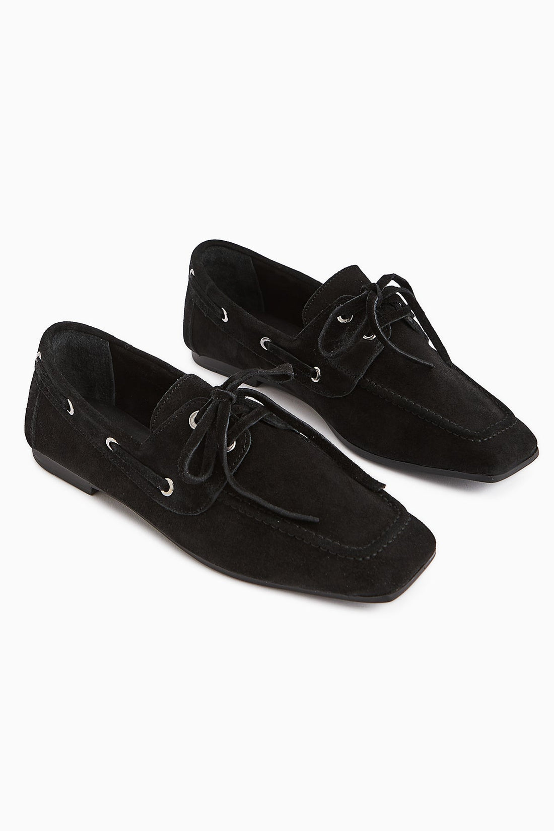 Arian Genuine Black Suede Leather Lace-Up Moccasin Daily Loafer
