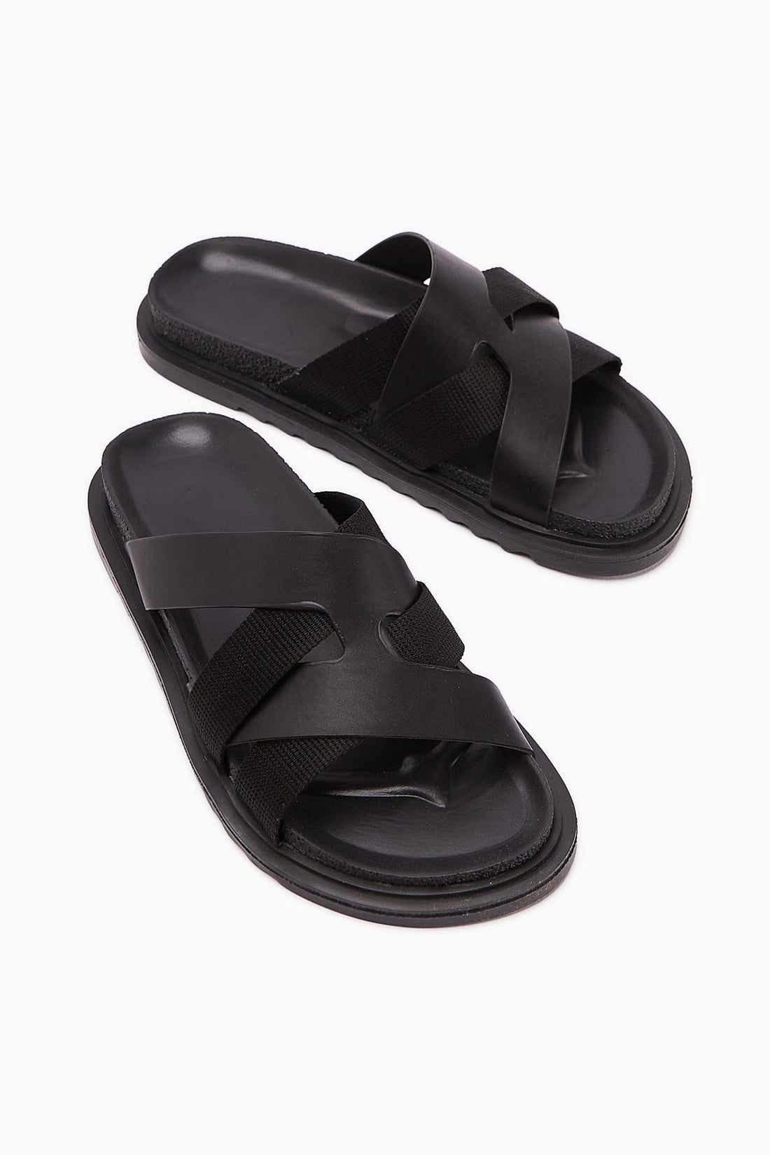 Joelle Genuine Leather Black Comfort Laser Cut Slippers