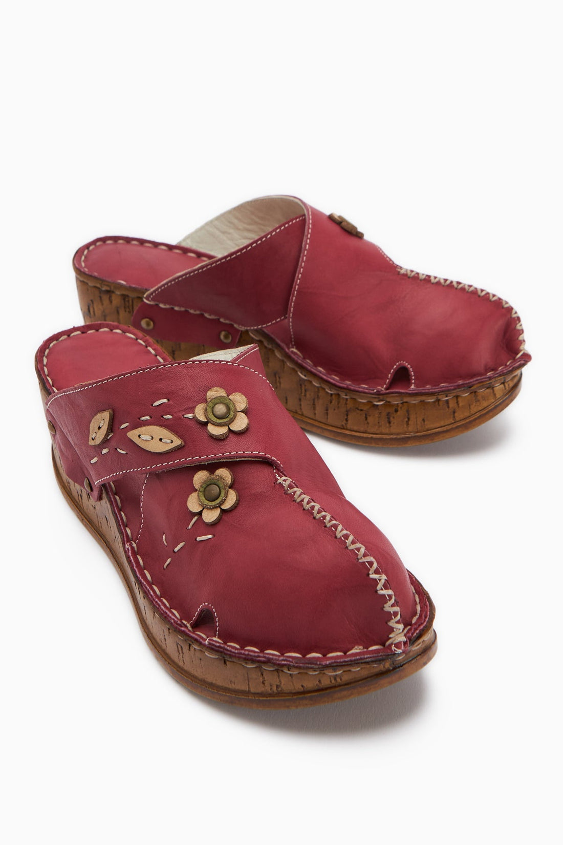 Alto Genuine Leather Red Comfort Slippers with Distressed Sole