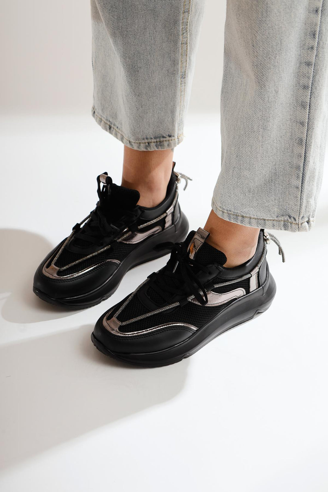 Luann Black Stone-Detailed Lace-Up Sneakers