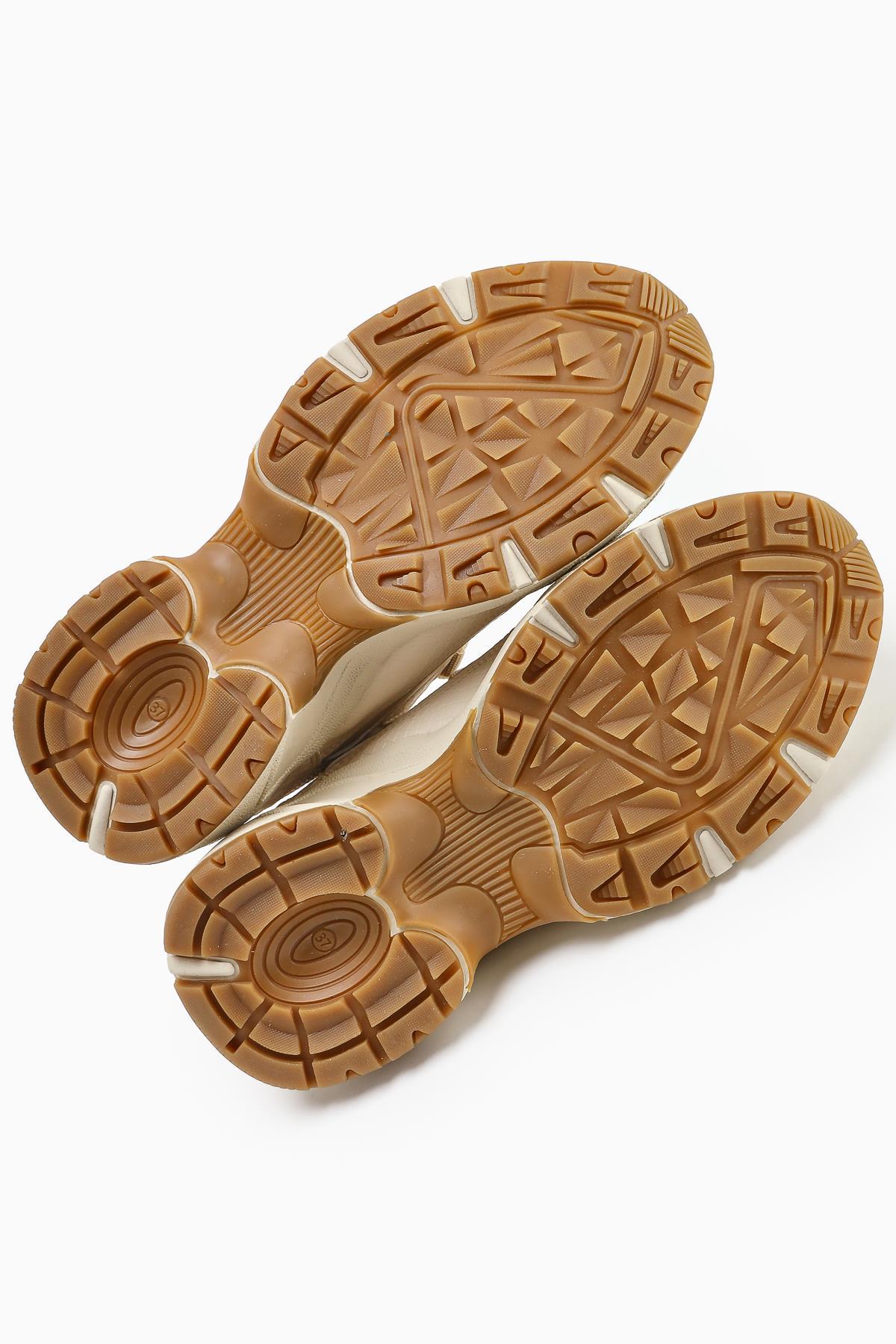 Caisa Beige Textile Detailed Lace-up Women's Sneakers