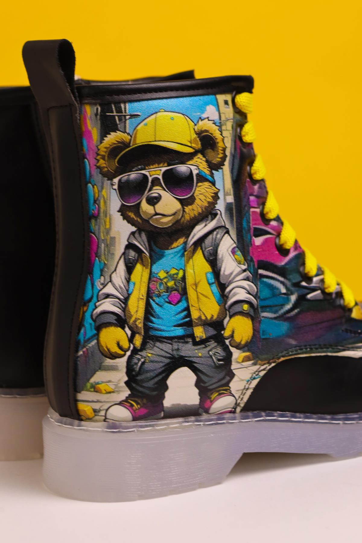 Denis Black Striped Character Print Lace-Up Kids Boots