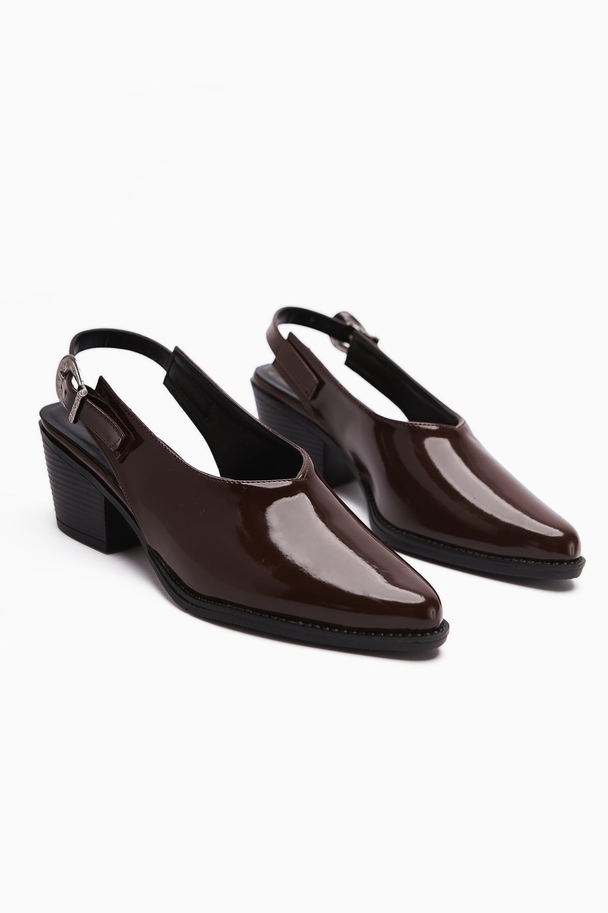 Emira Coffee Patent Leather Pointed Toe Closed Front Women's Sandal