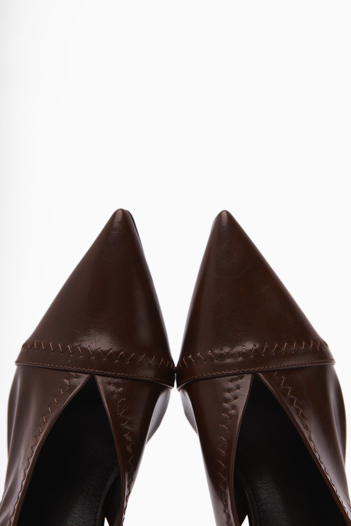 Essie Brown Pointed Toe Elastic Stitch Detail Women's High Heel Shoes