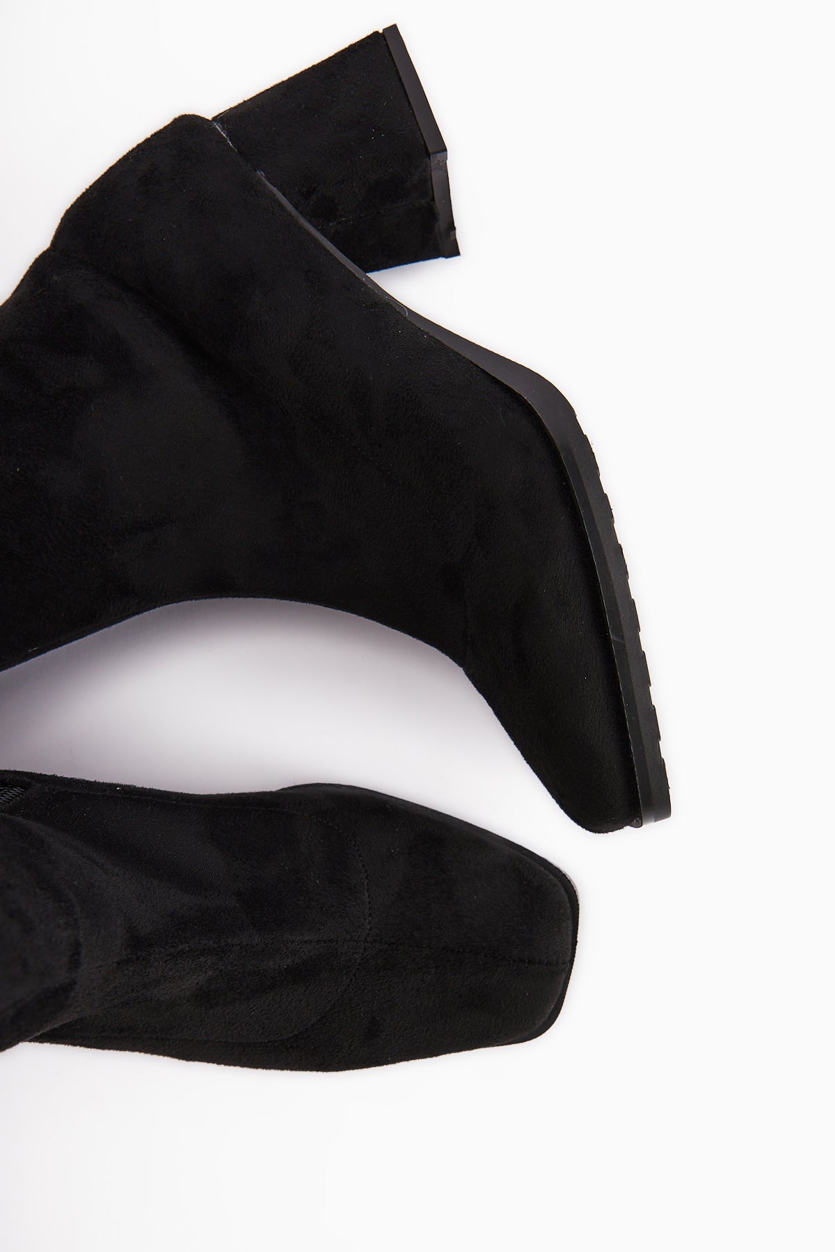 Ghina Black Suede Square Toe High Heel Women's Boot