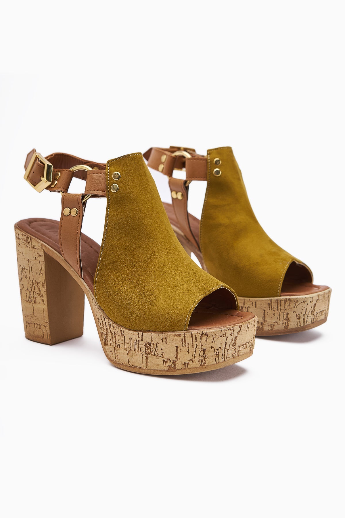 Hadel Green Suede Belted Platform Heel Women's Sandals
