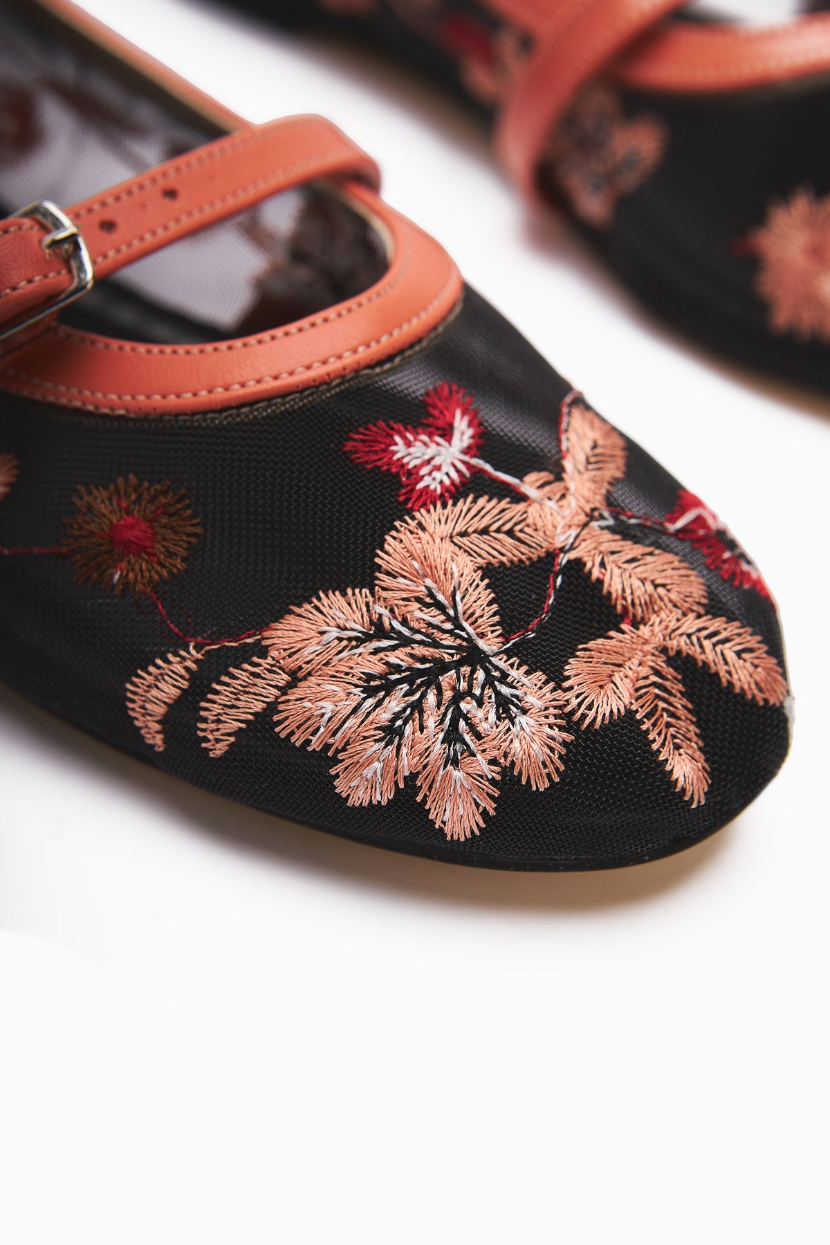 Jolin Orange Embroidered Buckle Women's Ballet Flat