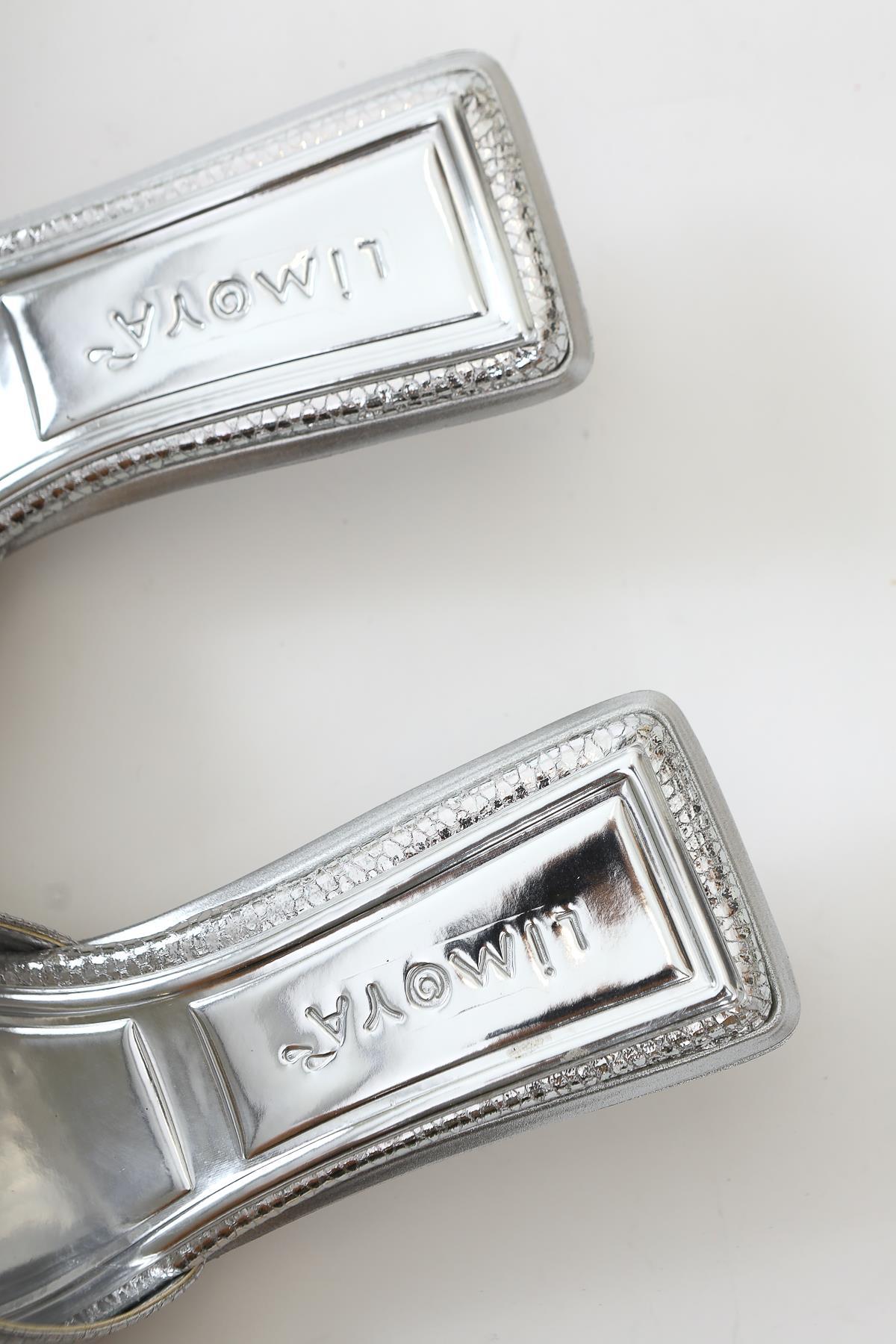 Juvy Glossy Silver Snake Skin Textured Bow Slippers