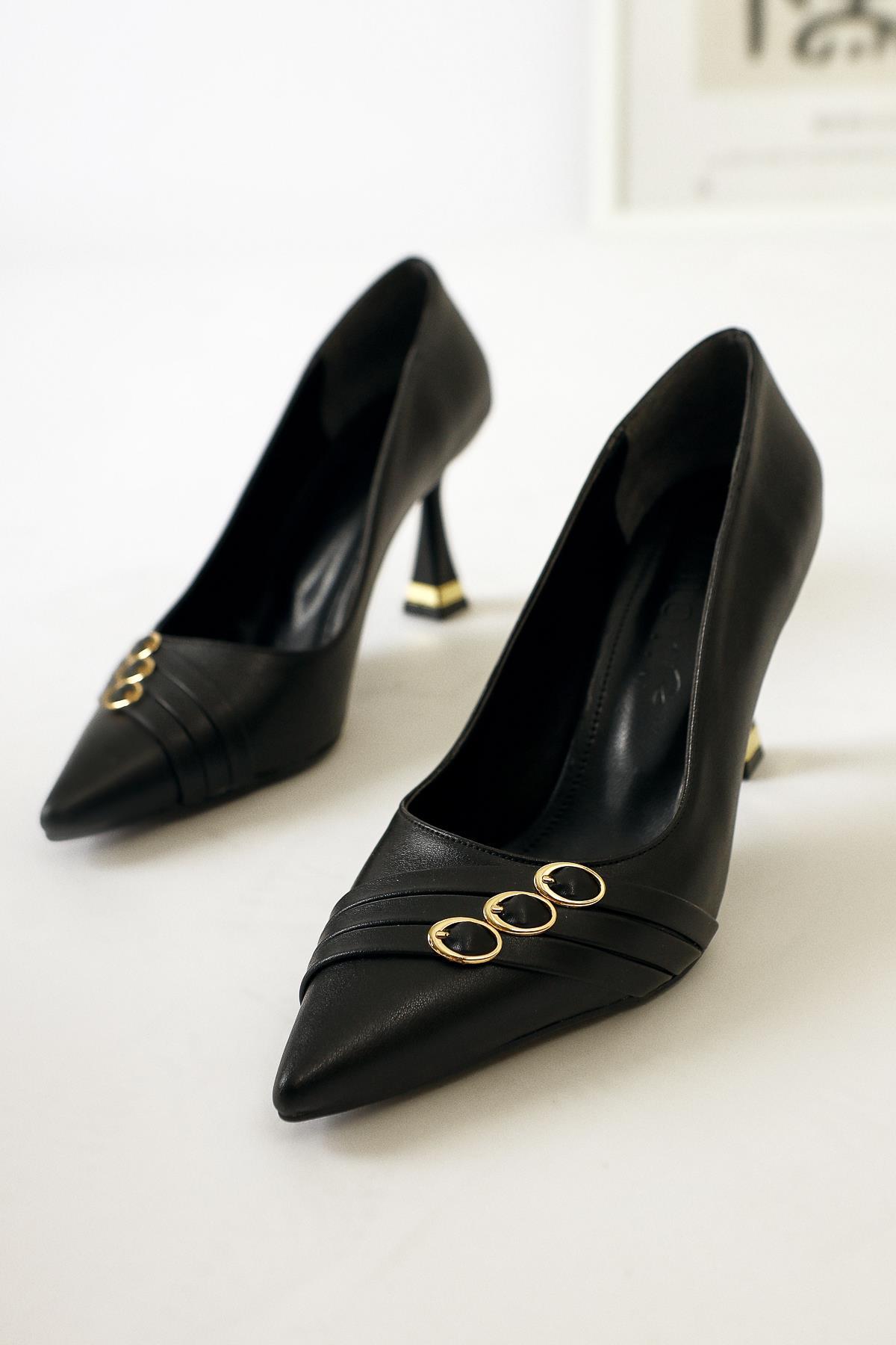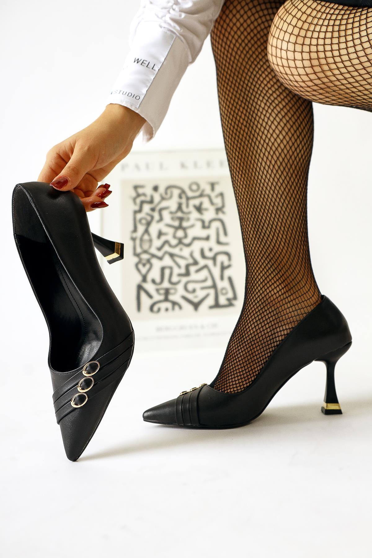 Lavina – Black Banded Gold Heel-Detail Pointed-Toe Stiletto (Women)