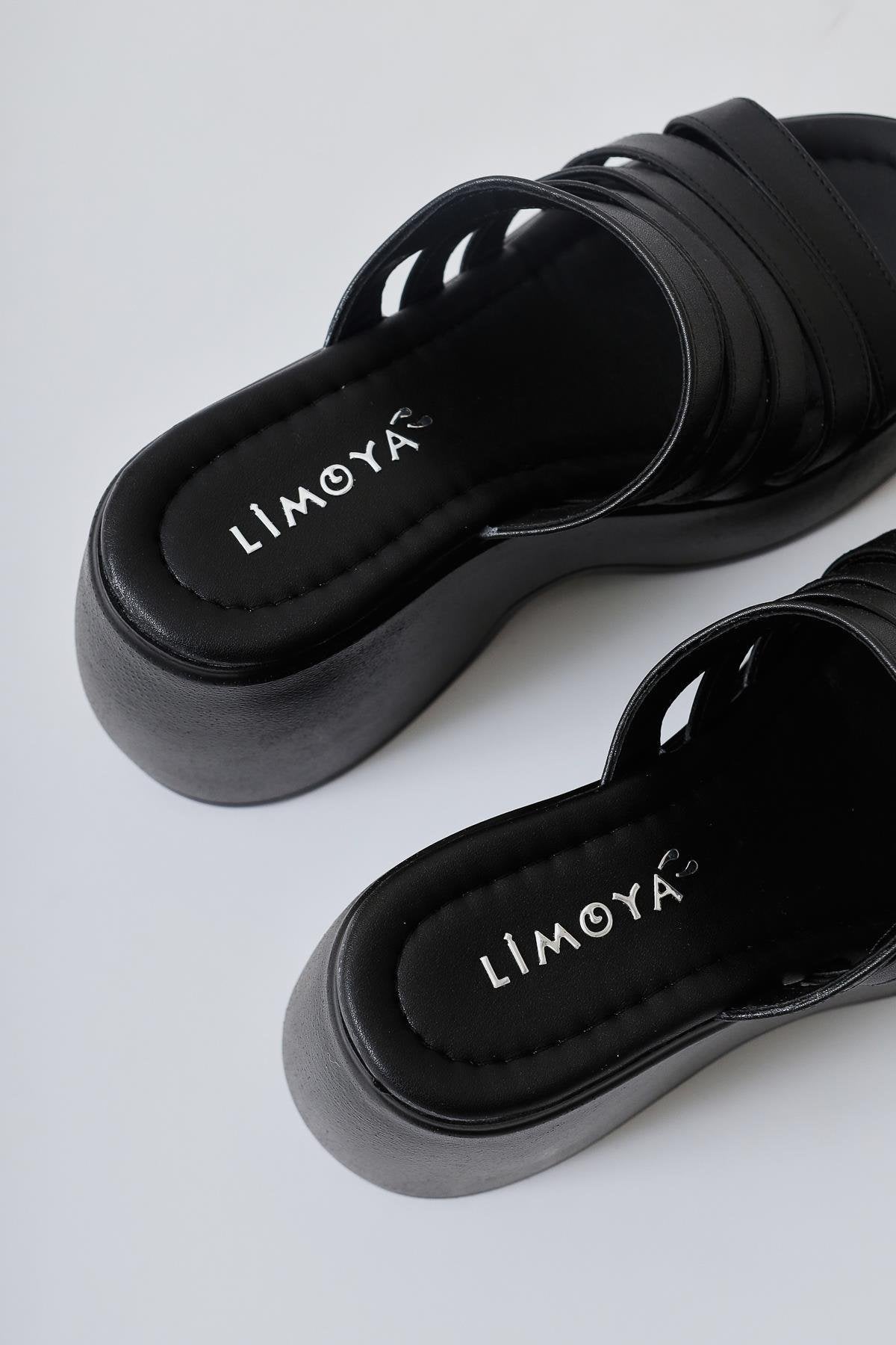 Margarit Black Thin Strap Platform Slide with Chunky Heel