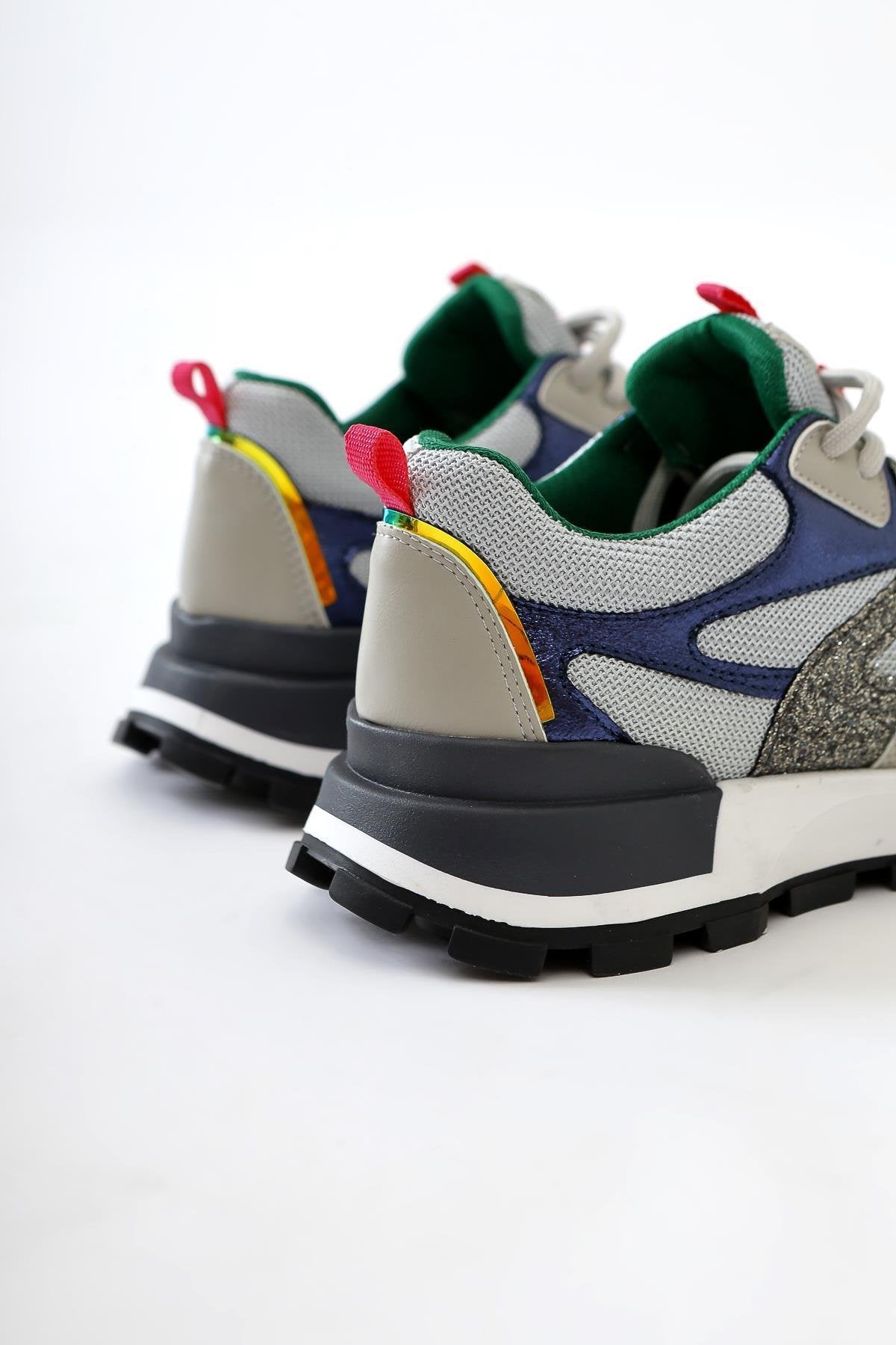 Netta Grey Lace-up Sneakers with Mesh Detail