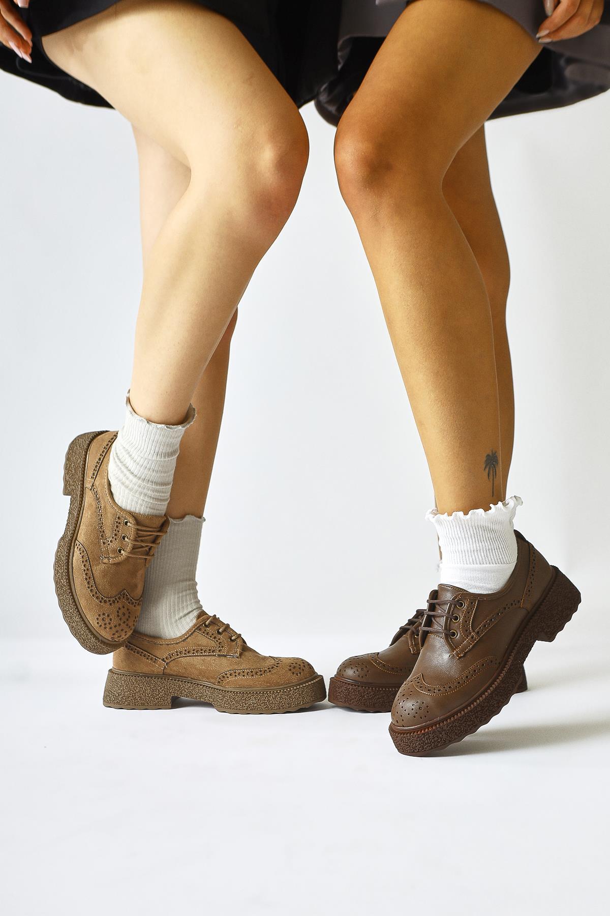 Rossy Mink Suede Oval Toe Laser Cut Casual Shoe