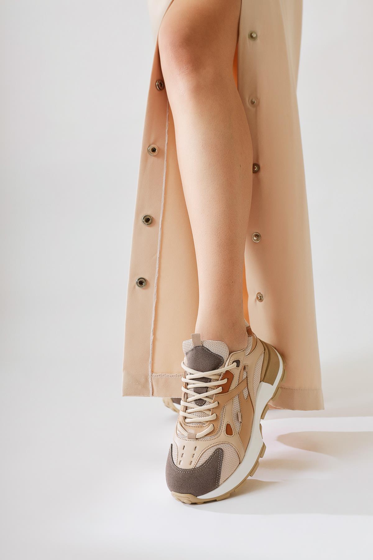 Siska Beige-Brown High-Platform Lace-Up Sneakers