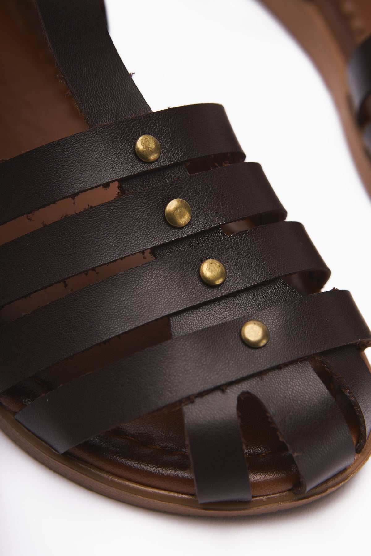 Tori Genuine Leather Coffee Four-Strap Adjustable Flat Sandals