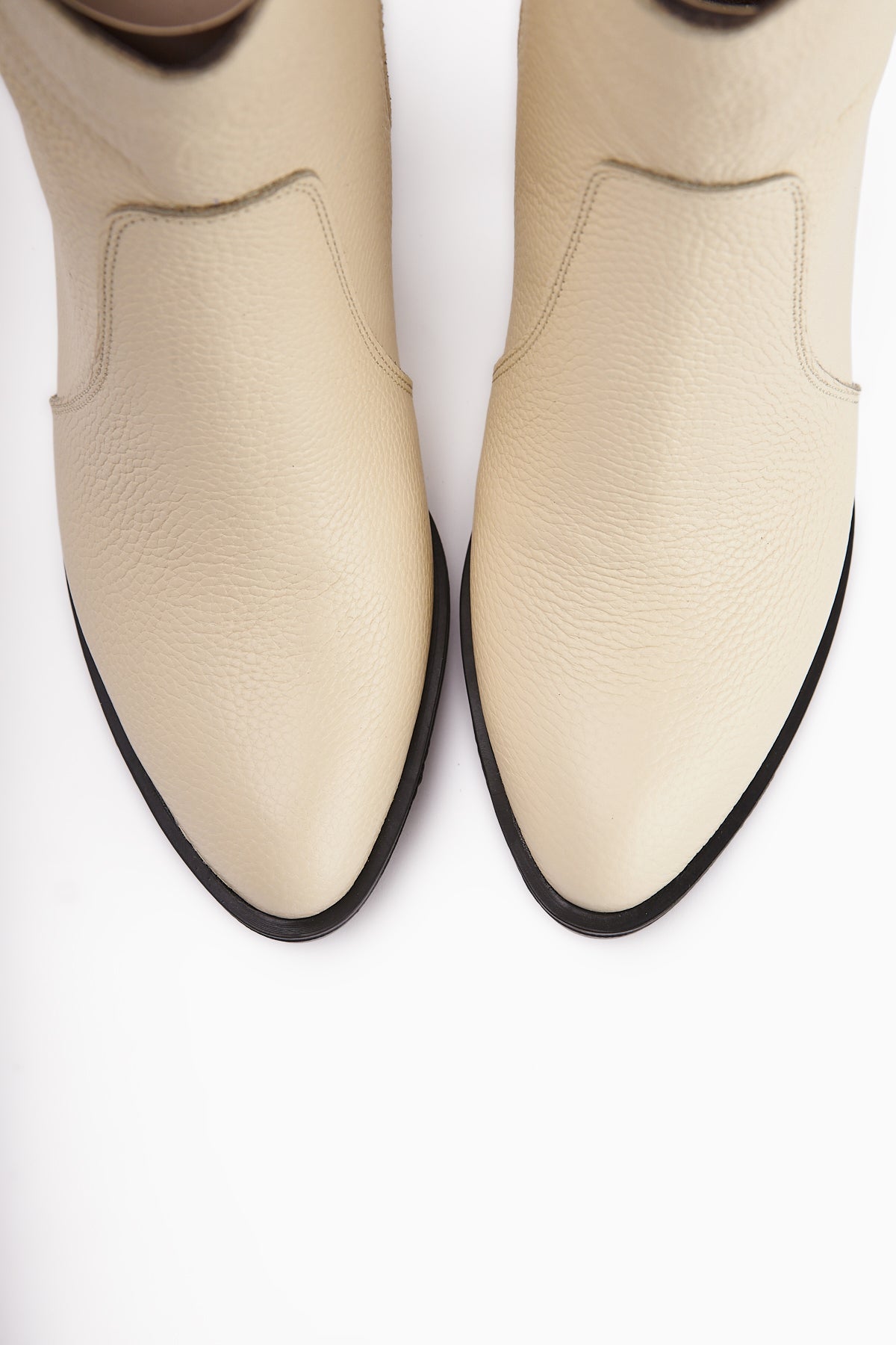 Ubax Genuine Leather Beige Heeled Women's Ankle Boot