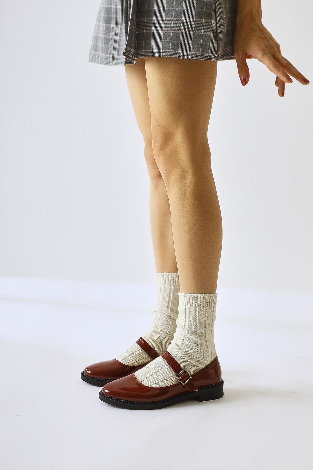 Vivy Burgundy Patent Leather Round Toe Single Strap Daily Shoes